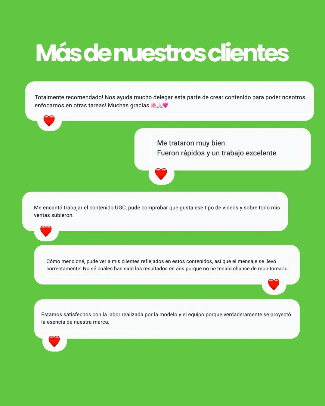 Les damos los activos de video que necesitan para que sus campañas sean ganadoras y rentables. Si necesitas un equipo que gestione tu estrategia de publicidad de forma integral, también ofrecemos ese servicio y podemos conversarlo en la llamada.